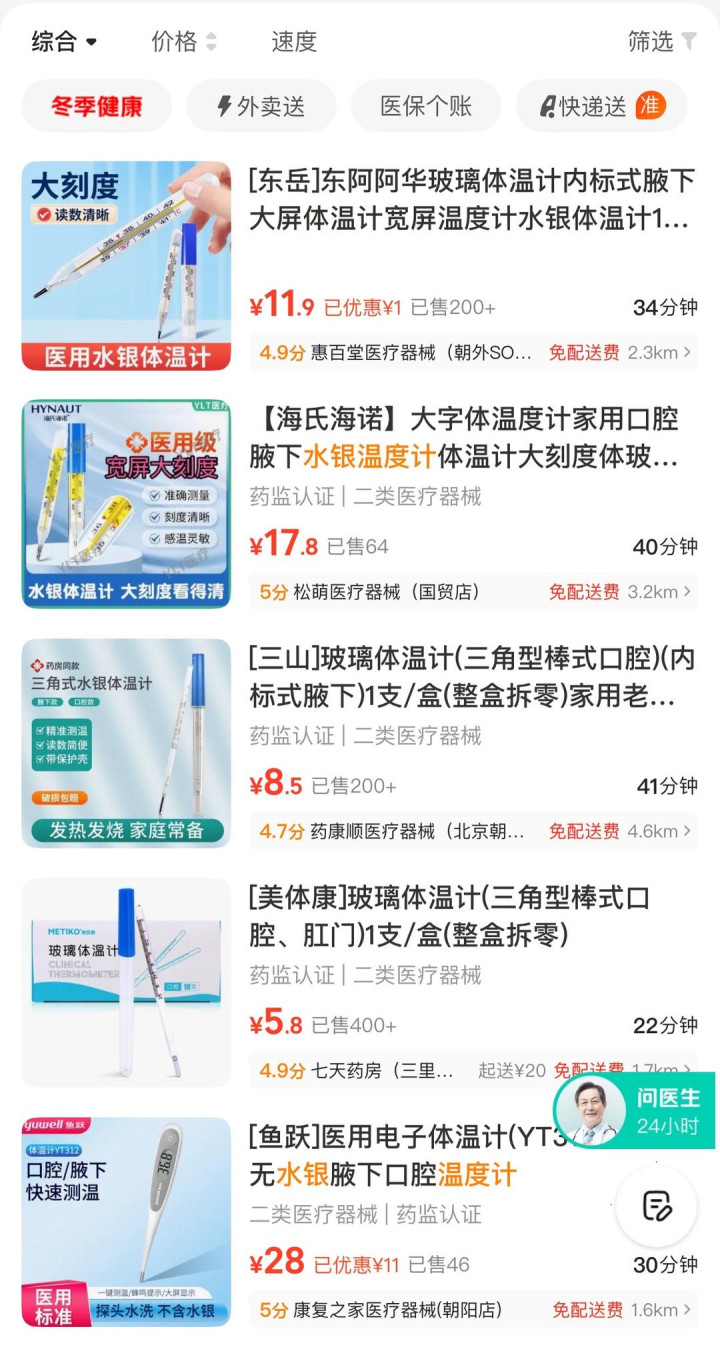 ▲药店的水银体温计价格多在10元左右,价格和销量变化不大截图自网购平台